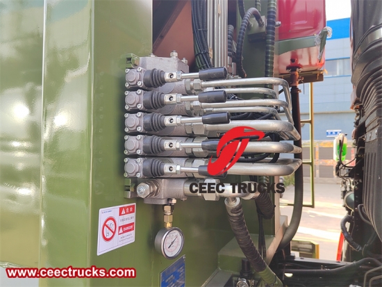 이 시스템은 PLC 제어 박스에서 제어되며, 시작, 정지, 1사이클, 연속 사이클 및 구조 활동을 활성화합니다. 테일게이트 및 이젝터 제어 장치는 차체 전면에 있습니다. 모든 적재 제어 장치는 테일게이트 오른쪽에 장착되어 있으며, 안전을 위해 모두 수동 제어됩니다. 압축은 푸시 버튼을 통해 전기적으로 제어되며, 필요한 경우 수동으로도 제어됩니다. |