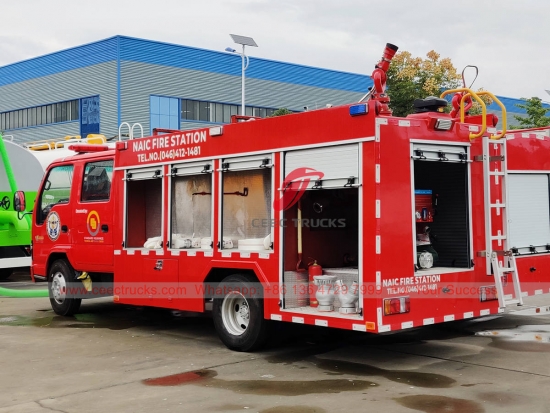 이스즈 4×2 소방차, 이스즈 NKR 좌측 핸들 구동 모델 4x2 섀시, MSB 5단 수동 기어박스, 이스즈 130HP 디젤 엔진, 페인팅 및 로고는 요구 사항에 따라 달라집니다.