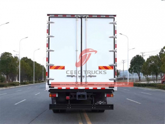 에이-¶냉장트럭 차체 구조는 샌드위치 구조입니다: 유리섬유 + PU + 유리섬유.모든 이중 표면 샌드위치 폴리우레탄 패널 및 도어는100mm두께, 유리섬유판 두께는2.5mm외피와 내피 모두 폴리우레탄 폼 밀도는 45~50kg/m³입니다. (모두 중국산 최고급 소재로 단열 성능이 뛰어납니다.)