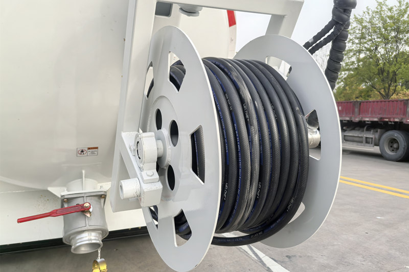 차량의 탱크 본체는 Q355 고품질 탄소강으로 제작되었습니다. 실린더와 헤드는 6mm 두께의 탄소강판 직선 용접으로 용접되었습니다.구조가 견고합니다. 탱크 본체는 부식 방지 재질로 제작되었으며, 액체 레벨 경보 및 빠른 배출 장치가 장착되어 있습니다.