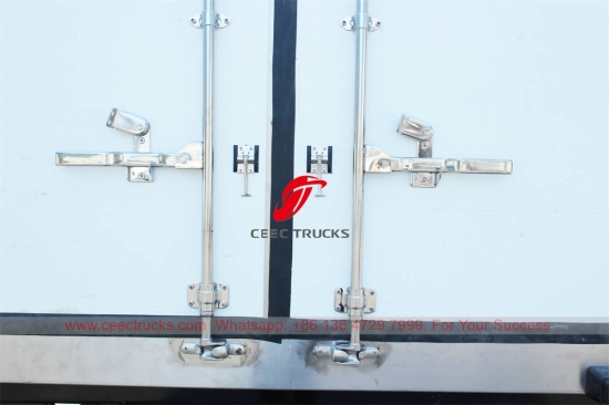 에이-¶냉장트럭 차체 구조는 샌드위치 구조입니다: 유리섬유 + PU + 유리섬유.모든 이중 표면 샌드위치 폴리우레탄 패널 및 도어는100mm두께, 유리섬유판 두께는2.5mm외피와 내피 모두 폴리우레탄 폼 밀도는 45~50kg/m³입니다. (모두 중국산 최고급 소재로 단열 성능이 뛰어납니다.)