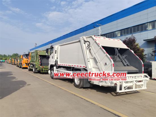 이스즈의 새로운 FVR GIGA 5X 4x2 16입방 압축 쓰레기 트럭에 대한 세 가지 작동 방법은 다음과 같습니다.