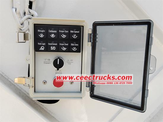 테일게이트 전기 제어 조작 박스는 쓰레기 수거 차량 뒷부분에 위치하여 지상 직원이나 운전자가 차량 밖에서 편리하게 조작할 수 있습니다. 조작 박스에는 작동을 제어하고 모니터링할 수 있는 여러 개의 제어 버튼과 표시등이 있습니다..
