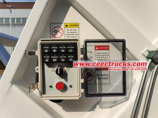 • 언로딩 및 재설정: 쓰레기통이 가득 차거나 비워야 할 때, 운전자는 제어판의 버튼을 눌러 푸시 플레이트를 초기 위치로 되돌립니다. 이후 후크 암 시스템이 쓰레기통을 지정된 위치에 위치시켜 비워줍니다.