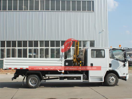 이스즈 ELF 190HP 카고 트럭 장착 크레인은 운송 및 리프팅 작업에 탁월한 성능을 제공하는 강력하고 잘 설계된 트럭입니다. 이스즈 크레인 트럭에는 190마력의 강력한 출력을 자랑하는 이스즈 디젤 엔진이 장착되어 있어 신속한 작업 요구를 충족합니다. 복열 캡은 5인승이며 에어컨이 장착되어 운전자와 작업자에게 편안한 운전 환경을 제공합니다. 이스즈 NPR 더블 캐빈 크레인 트럭의 상부에는 최대 인양 용량 5톤, 최대 인양 높이 11m, 최대 회전 각도 520°의 접이식 암 크레인이 장착되어 있습니다.
