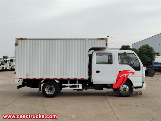 이스즈 ELF 더블 캐빈 카고 트럭 이스즈 100P 더블 로우 밴 트럭이라고도 불립니다.이스즈 NPR 더블 캐빈 픽업 트럭,이스즈 4x2 2+3인승 화물 밴 트럭, 이스즈 100P 경화물 트럭 밴 트럭,이스즈 100P 알루미늄 합금 밴 트럭.