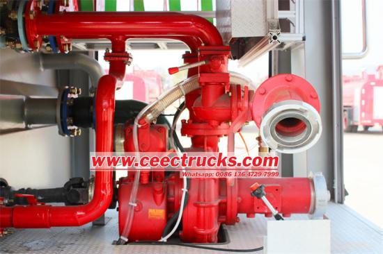 방화 시스템 측면에서, 차량에는 2,000리터 탄소강 건분말 저장 탱크와 설계 압력 15MPa의 80리터 질소 실린더 6개가 장착되어 있습니다. 소화 펌프는 PTO로 구동되며, 압력 범위는 1.6~2.5MPa, 유량은 80~120kg/s입니다. 소화포는 분사 속도가 40~80kg/s, 사정 거리는 40~60m로 다양한 화재 상황에 효과적으로 대응할 수 있습니다. 이스즈 NPR 소방차는 삽, 쇠지렛대, 도끼, 절단 장비 등 모든 표준 소방 및 구조 장비를 갖추고 있으며, 사다리와 투광 조명은 옵션으로 제공됩니다.