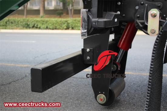 8단계. 팔 작동 핸들을 확장된 위치로 당기면 팔 실린더가 확장되고 가동 팔이 플립 프레임의 앞쪽 힌지 샤프트를 중심으로 회전하며 쓰레기통은 가동 팔과 함께 뒤집히고 아래로 기울어집니다. 쓰레기통을 설치할 때 차량 뒤쪽에 서는 것은 절대 금지되어 있습니다.