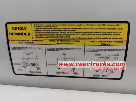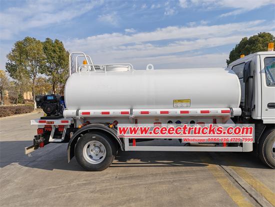 살수 작업을 위해 이 트럭에는 최대 5,000L 용량의 타원형 탄소 물탱크가 장착되어 있습니다. 이 설계는 물 저장 용량을 증가시킬 뿐만 아니라 탱크 구조를 더욱 컴팩트하게 만들어 좁은 도심 도로에서도 트럭의 민첩한 기동성을 향상시킵니다. 또한, 65QZF-40/50 워터 펌프를 장착하여 강력한 수압과 안정적인 유량을 제공하여 살수 작업의 효율성과 균일성을 보장합니다.