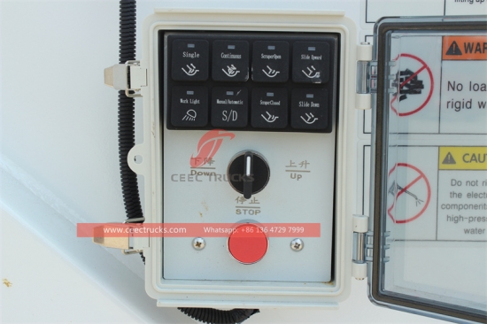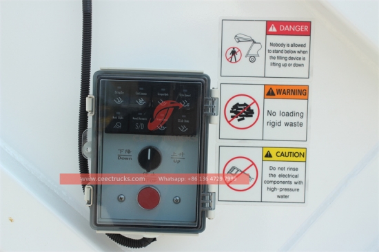 ** 후방 알람 및 카메라 장착 가능. ** 이탈리아 멀티밸브를 선택할 수 있습니다. ** 240L(단일 쓰레기통 또는 이중 쓰레기통) 또는 쓰레기통 리프터가 있는 표준 660L, 1100L 쓰레기통을 선택할 수 있습니다. |