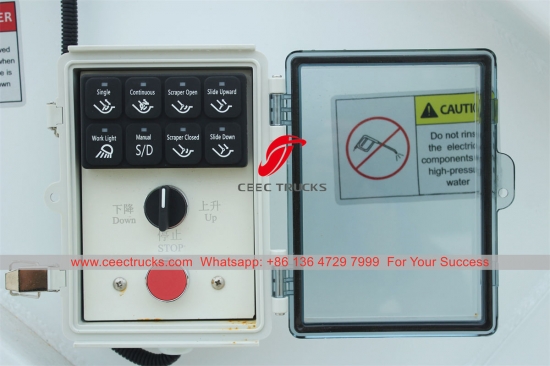 ** 후방 알람 및 카메라 장착 가능. ** 이탈리아 멀티밸브를 선택할 수 있습니다. ** 240L(단일 쓰레기통 또는 이중 쓰레기통) 또는 쓰레기통 리프터가 있는 표준 660L, 1100L 쓰레기통을 선택할 수 있습니다. |