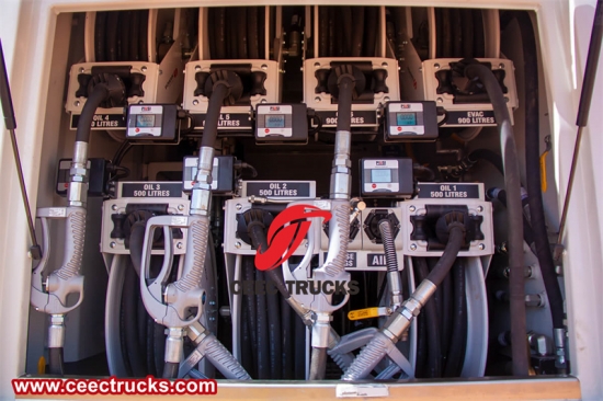 예를 들어, 트럭은 차량이나 정비 대상 장비의 요구 사항에 따라 디젤, 휘발유 또는 특수 연료를 공급하도록 구성할 수 있습니다. 또한, 다양한 부품에 그리스나 오일을 공급하는 자동 윤활 시스템을 장착하여 수동 윤활의 필요성을 줄이고 안전성을 향상시킬 수 있습니다.
