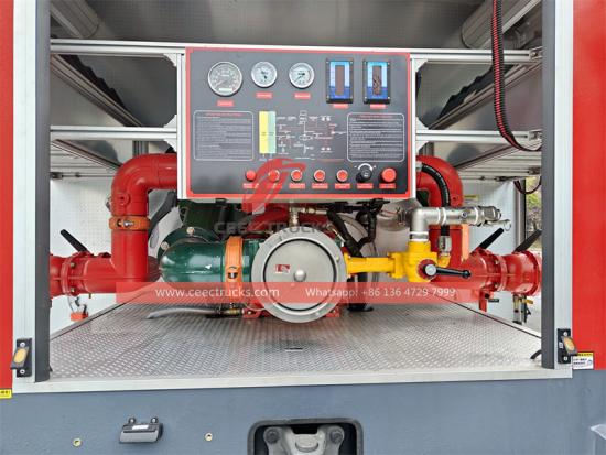 이스즈 F-시리즈 소방차는 견고한 ISUZU F를 기반으로 제작되었습니다.다섯R 섀시. 뛰어난 출력과 친환경적인 배기 가스 배출을 자랑합니다. 사륜구동 기능을 갖추고 있어 모든 종류의 험로를 정복할 수 있습니다.5000리터 대용량 물탱크와 전문 소방 펌프를 탑재했습니다. 분사 거리가 길고, 제어판 언어를 선택할 수 있습니다. 동시에 다양한 요구에 맞는 다양한 옵션 구성을 제공합니다. 이 이스즈 소방차는FVR불엔진화재 안전을 확실하게 보장하며 탁월한 성능과 유연성을 보여줍니다. 이스즈 FVR 소방차의 복열 캡은 소방 장비를 적재하고 우수한 주행 성능을 유지할 수 있는 충분한 공간과 품질을 제공합니다. 5명의 소방관을 수용할 수 있으며, 어떤 기상 조건에서도 운전자가 편안하게 운전할 수 있도록 냉난방 에어컨이 장착되어 있습니다.