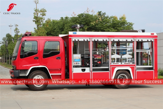 ISUZU 조명 소방차, ISUZU FVR 좌측 핸드 드라이브 모델 4x2 섀시, 6단 수동 기어박스, ISUZU 240HP 디젤 엔진 사용조명 시스템을 갖추고 있다, 그림과 로고는 요구 사항에 따라 달라집니다.