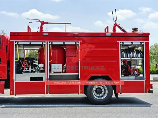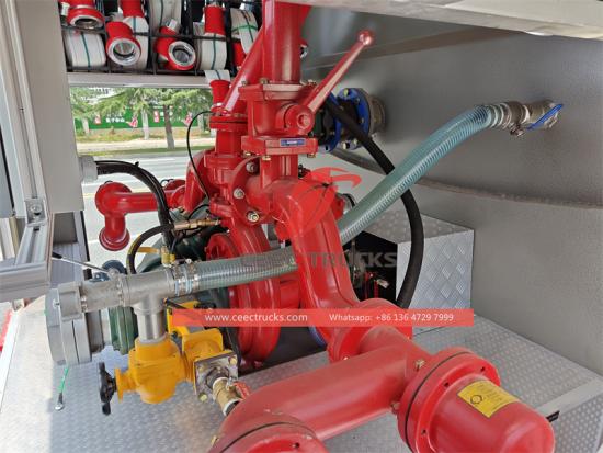 Customized dry chemical system with Nitrogen tanker이 차량은 이스즈 신형 기가 FTR 섀시를 기반으로 제작된 건식 분말소방차입니다. 강력한 이스즈 4HK1-TC 엔진이 장착되어 있습니다. G 배기량 5.19L, 출력 205마력의 60 엔진을 탑재했습니다. 4X2 구동 모드를 채택하고 MLD-6단 변속기가 장착되어 있습니다. 최고 속도는 95km/h에 달할 수 있어 다양하고 복잡한 도로 상황에 적응할 수 있습니다. 소화 시스템 측면에서 이스즈 소방차에는 1000kg 탄소강 건조 분말 저장 탱크, 3000L 물 탱크, 2000L 폼 탱크가 장착되어 있습니다. 설계 압력 15MPa의 80L 질소 실린더 4개가 건조 분말 소화 시스템을 지원합니다. 소화 펌프는 PTO로 구동되며 압력 범위는 1.6-2.5MPa, 유량은 80-120kg/s입니다. 소화포는 분사 속도가 60-100kg/s이고 사정 거리는 40-60m로 다양한 화재 상황에 효과적으로 대처할 수 있습니다. 이스즈 기가 소방차는 삽, 쇠지렛대, 도끼, 절단 장비 등 표준 소방 및 구조 장비를 모두 갖추고 있으며, 사다리와 조명도 옵션으로 제공됩니다.