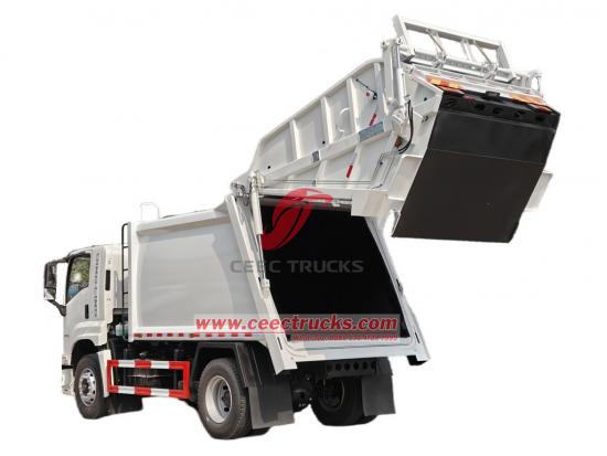 Rear tilting device for 770L and 1100L binsISUZU GIGA 4X 리어 로더 쓰레기 트럭이라고도 함이스즈 GIGA 4X 고형 폐기물 쓰레기 트럭폐기물 수거 및 처리에 사용되는 특수 차량입니다. 우리 지역 사회의 청결과 위생을 유지하는 데 중요한 역할을 합니다.그만큼이스즈 FTR 6륜 10cbm 리어 로더 트럭뒤쪽에는 많은 양의 폐기물을 담을 수 있는 대형 컨테이너 호퍼가 장착되어 있으며, 모든 작업은 슬라이드 플레이트와 스크레이퍼를 기반으로 효율적으로 진행됩니다.이 트럭에는 분쇄기와 스크린이 장착되어 있어 압축 전 쓰레기의 크기를 정확하게 확인할 수 있습니다. 이 이스즈 리어 로더 트럭은 이스즈 GIGA 4X 트럭 섀시에 쓰레기 차체(Refuse Body)를 장착한 운반 트럭입니다. 쓰레기 트럭의 주요 기능은 일반 쓰레기, 고형 폐기물, 재활용품 등 모든 종류의 폐기물을 수거하여 더 큰 폐기물 처리 시설로 운반하는 것입니다. 쓰레기 트럭은 주로 지방 자치 단체에서 사용되며 전 세계로 널리 수출됩니다.