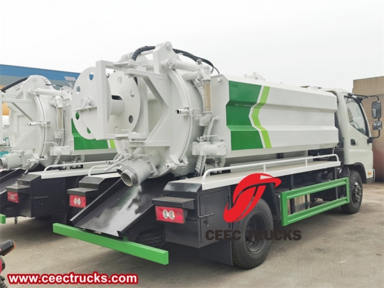 이 이스즈 기가(GIGA) 진공 트럭의 가장 큰 특징 중 하나는 내장형 제트 클리너입니다. 이 고압 물 분사 시스템은 찌꺼기와 슬러지를 분해하고 분해하여 진공 시스템의 수거 및 운반을 더욱 용이하게 합니다.