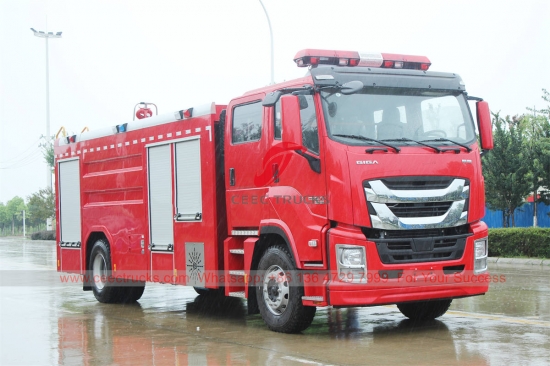 일본 이스즈 기가 8000리터 소방차, 이스즈 신형 기가 좌측 핸들 구동 모델 4x2 섀시, 고속 12단 수동 기어박스, 이스즈 380마력 디젤 엔진, 중국 유명 소방 펌프, 페인팅 및 로고는 요구 사항에 따라 달라집니다.