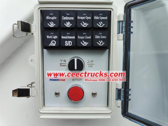 이스즈 기가 6x4 리어 로더 콤팩터 트럭은 유압 실린더로 구동되는 강력한 압축 시스템을 탑재하여 폐기물의 양을 크게 줄입니다. 캐빈에 장착된 전기 제어 박스, 운전석 유압 레버, 그리고 테일게이트에 장착된 전기/수동 제어 장치는 다양한 작동 방식을 제공합니다. 이러한 견고한 설계는 효율적인 폐기물 관리와 적재 용량을 보장하여 다양한 폐기물 수거 작업에 이상적입니다.