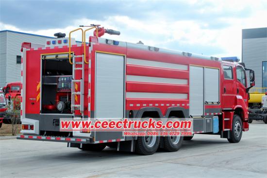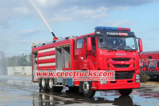 이 이스즈 기가 소방차는 실전용으로 설계되었습니다. 복열 캐빈은 5명을 수용할 수 있으며, 뒷좌석에는 소방관들이 화재 현장에 진입할 수 있도록 공기 호흡 장치 브래킷이 장착되어 있습니다. PLC 제어 소화 시스템은 유연하고 다양한 작동 옵션을 제공합니다. 지붕에 장착된 원격 제어식 소화포는 360도 회전이 가능하여 소방 활동을 더욱 유연하고 효율적으로 수행할 수 있습니다. LED 조명 시스템과 경고등은 야간 작업의 안전을 보장합니다. 전반적으로 이 이스즈 기가 소방차는 현대 소방차의 최고 수준을 보여줍니다.