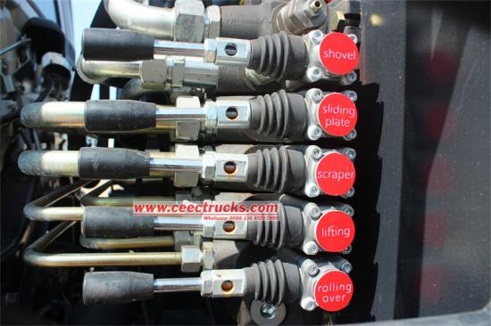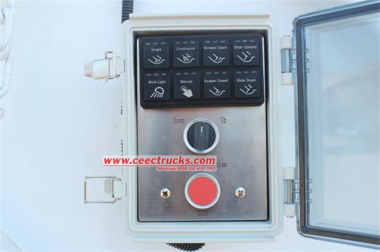 수동 및 자동 두 가지 제어 방법을 통해 운전자는 트럭 뒷부분의 캐빈에서 작업할 수 있어 매우 편리하고 효율적이며 비상 제동 정지 버튼 작동 장치도 갖추고 있습니다. |