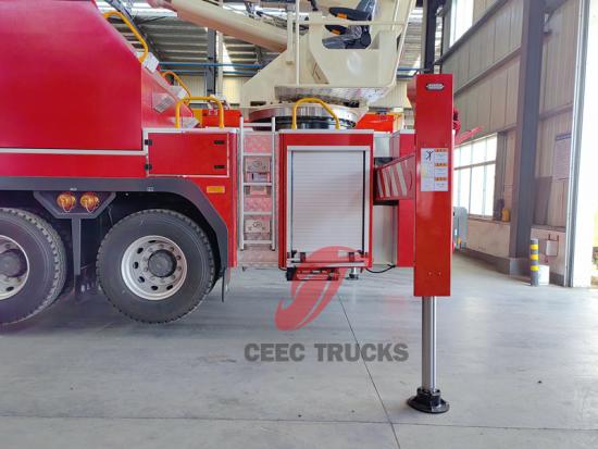 소방 시스템의 배관은 스테인리스 스틸 배관 + 알루미늄 합금 배관으로 구성되어 있습니다. 물관은 중앙 회전체를 통해 차량 상부로 연결되어 급수 또는 포말 분사에 필요한 물을 공급합니다. 상부 암 헤드에는 전기식 원격 제어 물대포가 장착되어 있어 물의 흐름 형태(직류 및 물 분사)를 변경하고 물 또는 포말을 분사할 수 있습니다. 차량 하부에는 물 주입구가 있어 고층 건물의 대유량 소화 요건을 충족합니다.