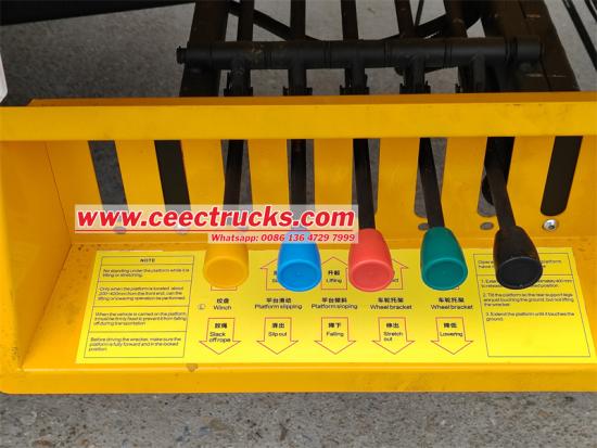 바퀴 까치발 상승 및 하강: 조이스틱은 또한 휠 스탠드의 높이를 제어하여 운전자가 플랫폼의 아래쪽 기울기를 지지하면서 필요에 따라 휠 스탠드를 높이거나 낮출 수 있도록 합니다.이는 다양한 높이에서 차량을 적재하거나 하역할 때 특히 유용합니다.