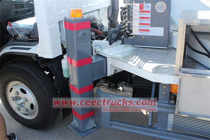 CEEC TRUCKS ISUZU 12m 고소작업차 버킷트럭수입 역전 밸브와 유압 실린더, 원활한 역전 및 유연한 작동; 작업 암의 흔들림을 방지하고 안정성을 향상시키기 위해 2방향 밸런스 밸브를 장착했습니다.4개의 H형 아웃리거와 연동 장치, 유압 아웃리거는 개별적으로 또는 동기적으로 상승 및 하강할 수 있으며, 아웃리거는 작업 암과 연동되어 오작동으로 인한 전복을 방지합니다.이스즈 미니 ELF 12m 유압식 맨리프트 트럭은 과부하 보호, 제한 보호, 비상 정지 버튼, 유압 시스템 자체 잠금 기능, 전복 방지 보호 장치 등 다중 보호 시스템을 갖춰 고고도 작업의 안전을 보장합니다.