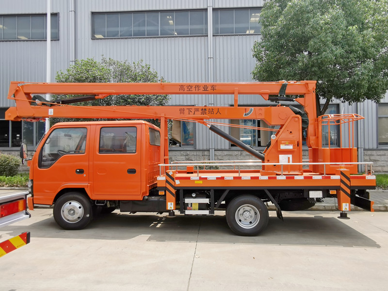 Customized insulated bucket for 220V 230V operation이스즈 더블 캐빈 16m 고소작업차또한 ~라고도 불린다16m 맨 바스켓이 장착된 ISUZU 600P 접이식 암 고소작업차는 일본 ISUZU 600P NKR 트럭 섀시를 기반으로 개조된 고소작업용 특수 차량입니다. 4도어의 더블 캐빈 로우로 운전자 1명과 승객 4명이 탑승 가능하며, 4KH1CN6LB 디젤 엔진(88KW/120HP)을 장착하고 배기량은 2999ml입니다. 전진 5단, 후진 1단의 MSB 5단 수동 기어박스, 예비 타이어 1개를 포함한 7.00R16 튜브리스 타이어가 표준 장착되어 있습니다.이스즈 맨리프트 트럭c와 함께가장 큰 특징은 최대 작동 높이가 16m에 달하는 접이식 팔 구조입니다.3단 접이식 암 디자인을 채택하여 360도 회전을 지원하며, 작동 반경은 7~7.5m에 달합니다. 플랫폼 정격 하중은 일반적으로 200kg이며, 최대 2명까지 탑승 가능합니다.내구성 있는 작업을 위해 스테인리스 스틸 소재나 탄소강 소재의 맨 바스켓을 장착하는 것이 옵션이며, 220V, 230V, 260V, 330V 등의 전압에서 전기 작업을 위해 유리 섬유 소재의 맨 바스켓을 장착하는 것도 옵션입니다. 다양한 고소 작업 시나리오에 적합합니다.