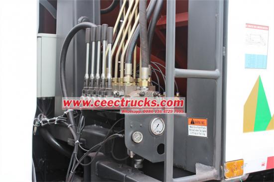 ——유압 시스템:연료 탱크, 오일 펌프, 다방향 밸브, 유압 실린더, 파이프라인 등으로 구성됩니다. 유압 압력은 일반적으로 16Mpa로 설정되며, 동력은 엔진에서 동력 인출 장치를 통해 얻어져 적재 및 하역, 압축, 리프팅 등의 동작을 구동합니다.
