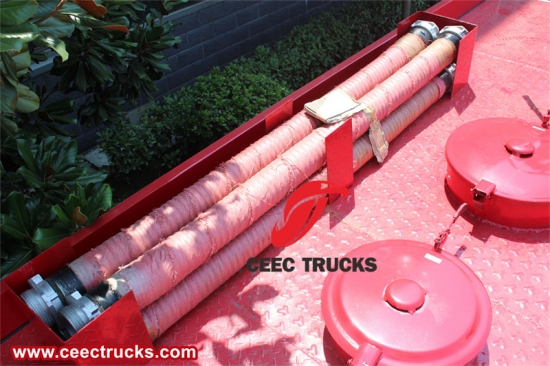 - **물 흡입 파이프**: 물 흡입관은 소방차가 필요할 때 외부 수원에서 물을 흡입하는 데 사용됩니다. 이 장비는 소방차가 현장에 충분한 물을 확보하여 지속적인 소방 활동을 수행할 수 있도록 보장합니다.