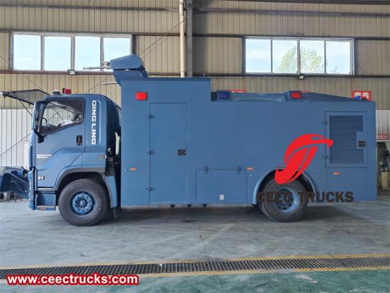 이스즈 기가 방폭차량은 주로 대규모 집단 행사에 사용되며, 군중을 분산시키는 데 사용할 수 있습니다. 테러리스트가 차량을 사용하여 중요한 목표물을 공격하거나 탈출하는 것을 방지하기 위해 우수한 차단 효과가 있습니다.