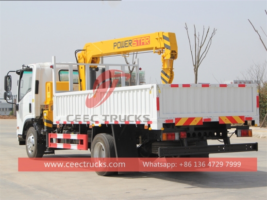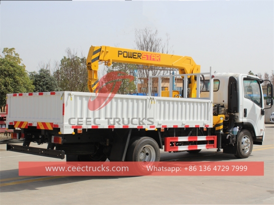 이스즈 700P 5톤 크레인 트럭, 이스즈 좌측 핸들 구동 섀시, MLD 6단 수동 기어박스, 이스즈 190HP 디젤 엔진, 중국 유명 브랜드 5톤 텔레스코픽 붐 크레인, 화물차 크기는 요구 사항에 따라 달라지며, 페인팅 및 로고는 요구 사항에 따라 달라집니다.