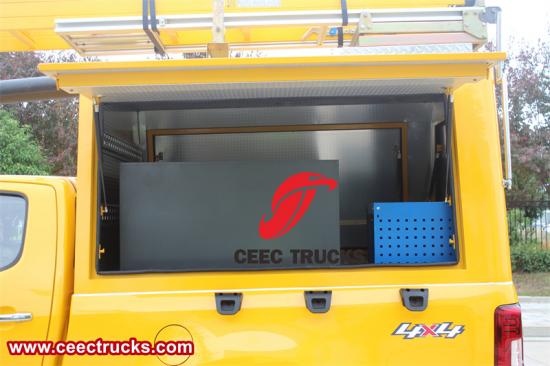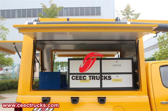 파워스타(POWERSTAR)에서 제작한 이스즈 4륜 구동 픽업트럭 모바일 서비스 차량은 이스즈 4륜 구동 픽업트럭을 기반으로 개조되었습니다. 143마력 4KH1CT6H1 엔진이 탑재되어 있으며, 휠베이스는 3,406mm이고 최대 토크는 320N·m입니다. 강력한 출력과 부드러운 변속을 자랑하는 이스즈 MSB 5단 변속기가 장착되어 있습니다. 차량 후면의 공구함에는 필요에 따라 필요한 서비스 공구를 장착할 수 있습니다.