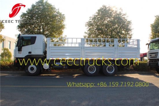 IVECO 6*4 카고 트럭은 오리지널 IVECO 섀시, Crusor C9 타입 340 HP 엔진, 고품질 탄소강 Q345 소재 카고 박스를 사용하여 매우 견고합니다. 케냐 몸바사로 수출