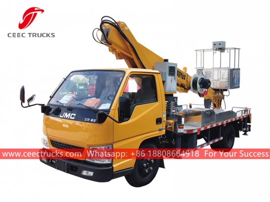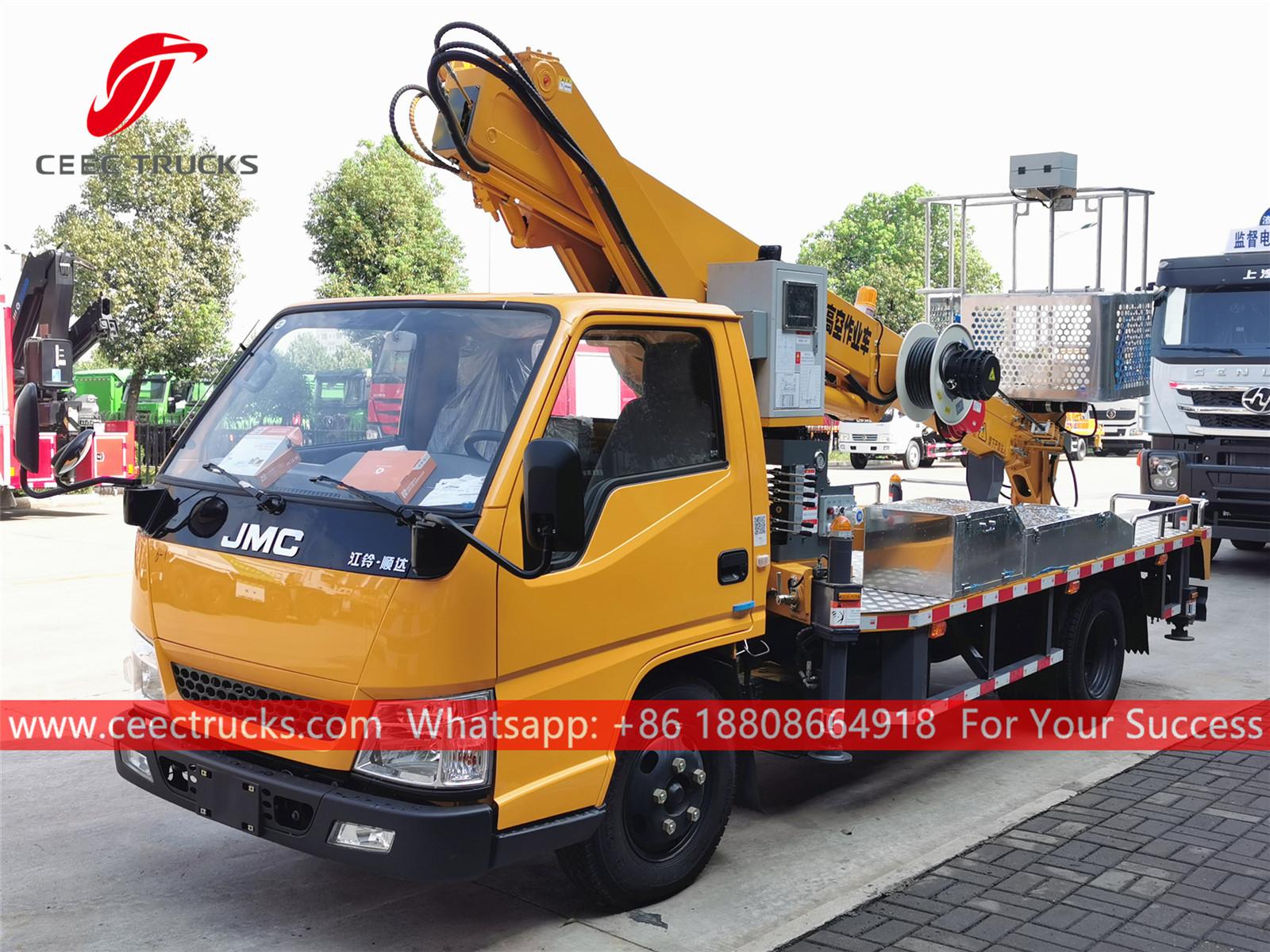 16m 텔레스코픽 맨리프팅 트럭, JMC LHD 4x2 섀시, 5단 수동 기어박스, JMC 115마력 디젤 엔진, 도색 및 로고는 고객 요구 사항에 따라 달라질 수 있습니다. 고객 언어 제어 박스.