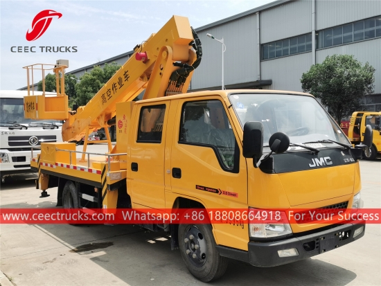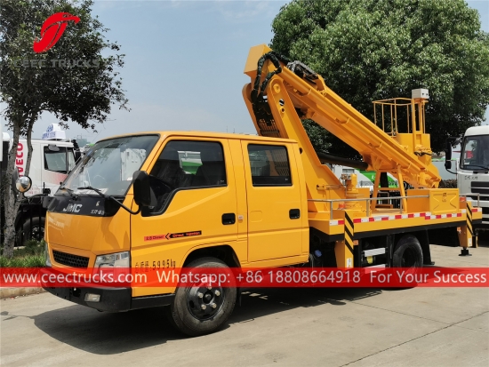 16m 텔레스코픽 맨리프팅 트럭, JMC LHD 4x2 섀시, 5단 수동 기어박스, JMC 115마력 디젤 엔진, 도색 및 로고는 고객 요구 사항에 따라 달라질 수 있습니다. 고객 언어 제어 박스.