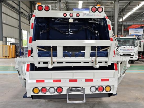 Semi-sealed bucket flip mechanism목 이자형 이스즈 NPR 소형 쓰레기 압축기 트럭은 뛰어난 성능을 자랑하는 도시형 쓰레기 트럭입니다. 최대 출력 190마력, 배기량 5.19L의 4HK1-TCG61 엔진을 탑재하고 있으며, 4기통 직렬 터보차저 인터쿨러 디자인을 채택했습니다. 차량 총 중량은 11톤이며, 실제 적재 용량은 4.9톤입니다. 섀시는 4x2 구동 방식이며 휠베이스는 3815 mm. 쓰레기통은 10세제곱미터 용량이며, 곡면 일체형 강판으로 제작되었습니다. 바닥판과 측면판은 모두 두께 4mm의 Q235 특수강으로 제작되었으며, 압축비는 1:3.4입니다.