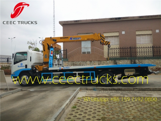 최대 5톤의 적재 용량을 갖춘 ISUZU 190HP 도로 구조차, ISUZU 모델 4KH1-TCG40 엔진, MLD 6단 수동 기어박스, 시에라리온 고객 요구 사항을 충족하기 위해 XCMG 브랜드 5T 텔레스코픽 붐 크레인이 장착되어 있습니다.