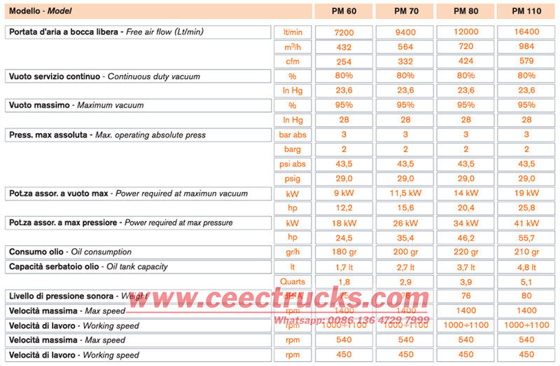 » 2. MORO 펌프가 장착된 정화조 트럭 차체에 대한 제품 매개변수: