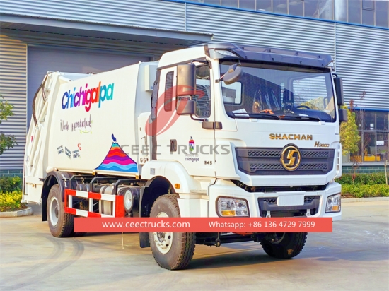 아프리카용 Shacman H3000 폐기물 압축기 20 CBM, ISM11E4 385HP Euro 4 엔진, 간편한 조작을 위한 FAST 12단 수동 기어박스, 간편한 조작을 위한 CAN-bus 제어 시스템 장착.