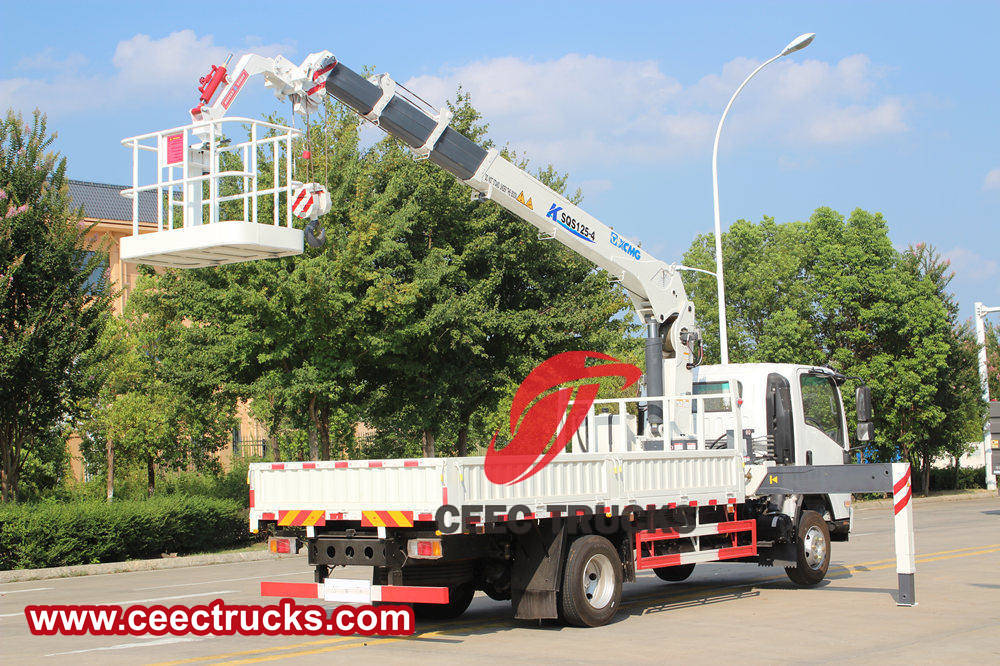 고객의 특정 요구 사항에 대응하여 CEEC는 이를 세심하게 제작했습니다.이스즈 크레인 트럭이스즈 NPR 섀시를 기반으로 합니다. 견고성, 내구성, 그리고 유연한 핸들링으로 정평이 난 이 섀시는 11,000kg의 차량 총중량(GVW)으로 안정적인 하중 지지 기반을 제공합니다. 출력 측면에서는 낮은 연비, 높은 토크 출력, 그리고 뛰어난 신뢰성으로 동급 제품 중 단연 돋보이는 이스즈 4HK1-TCG61 190마력 엔진이 장착되어 다양한 작업 조건에서 트럭 탑재형 크레인의 강력한 동력 성능을 보장합니다.