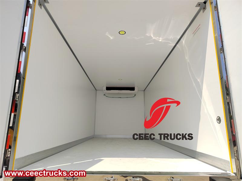 화물칸의 이스즈 700P 10톤 냉장 트럭은 실용성과 세심한 디자인을 자랑하며, 최대 적재 용량과 효율적인 상하차 작업에 최적화되어 있습니다. 내부 레이아웃은 고기 걸이, 선반, 칸막이 등의 기능을 통해 다양한 화물량과 구성에 맞춰 맞춤 제작이 가능하여, 기업은 자사의 특정 요구에 맞춰 차량을 맞춤 제작할 수 있습니다. 고품질 소재와 표면 처리는 내구성과 손쉬운 유지 관리를 보장하며, 전략적으로 배치된 조명과 출입 지점은 운전을 간소화하고 화물칸 내 가시성을 향상시킵니다.