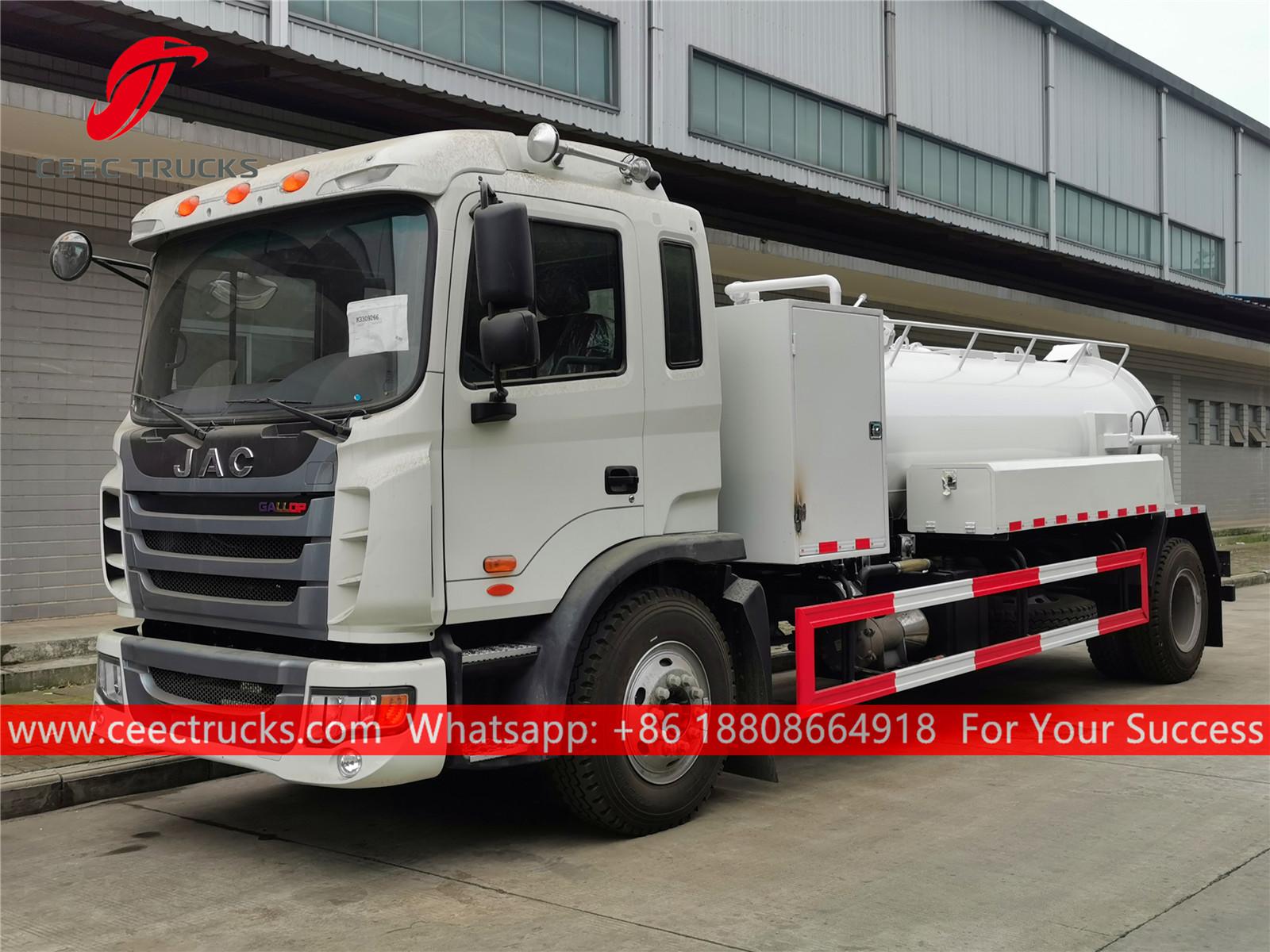 JAC 8cbm 진공 탱커 트럭, 좌측 핸들 모델 4x2 섀시, 6단 수동 기어박스, YUCHAI 160HP 디젤 엔진, 페인팅 및 로고는 요구 사항에 따라 달라집니다.